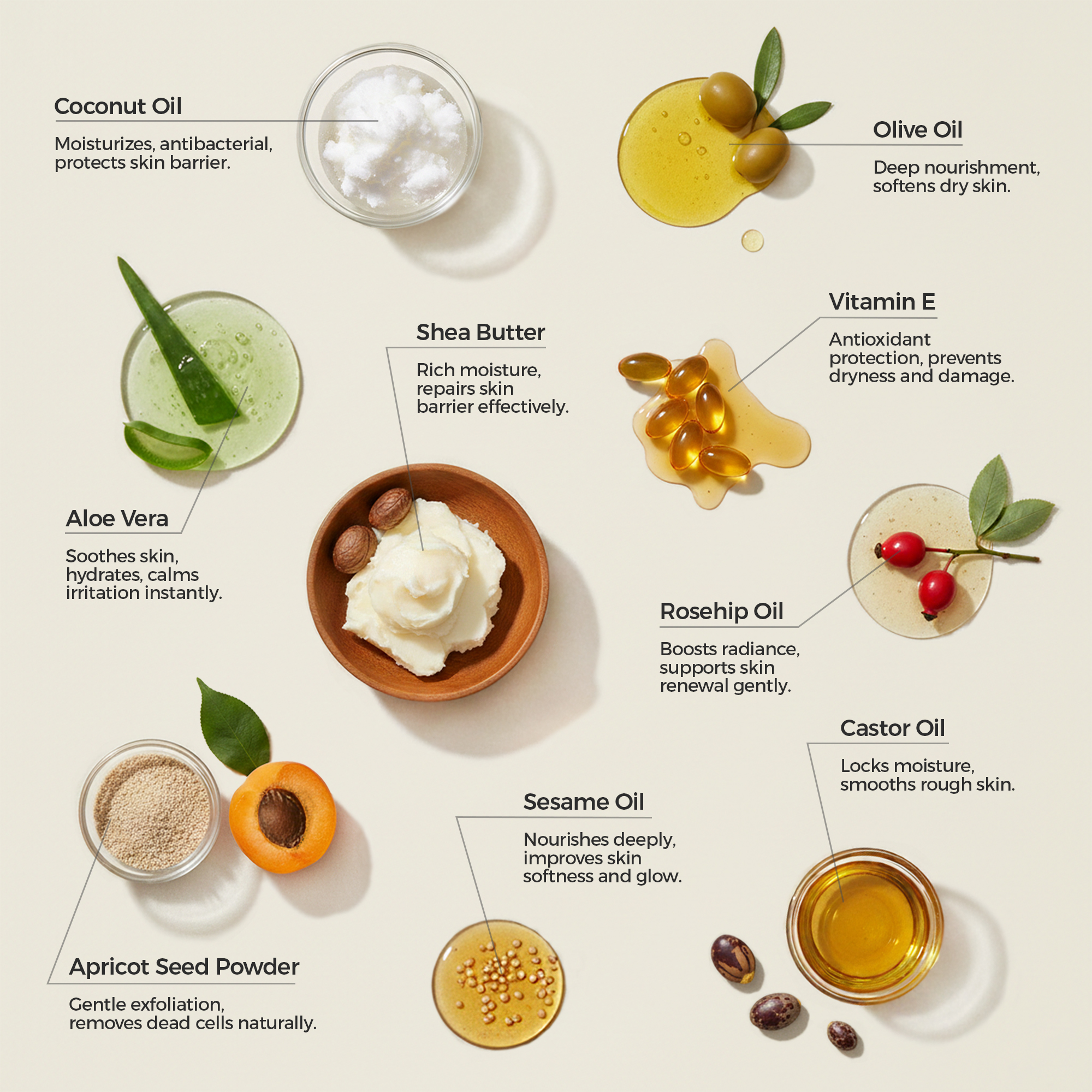 Shea Butter – Deep hydration and protection.