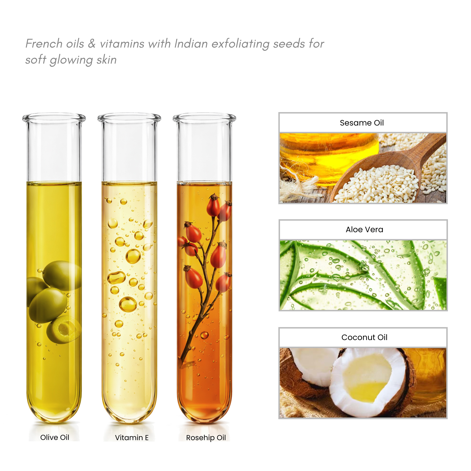A nourishing exfoliating scrub designed to gently polish the skin while replenishing moisture. Natural exfoliants and rich oils help remove dull surface cells, revealing smoother, radiant skin.