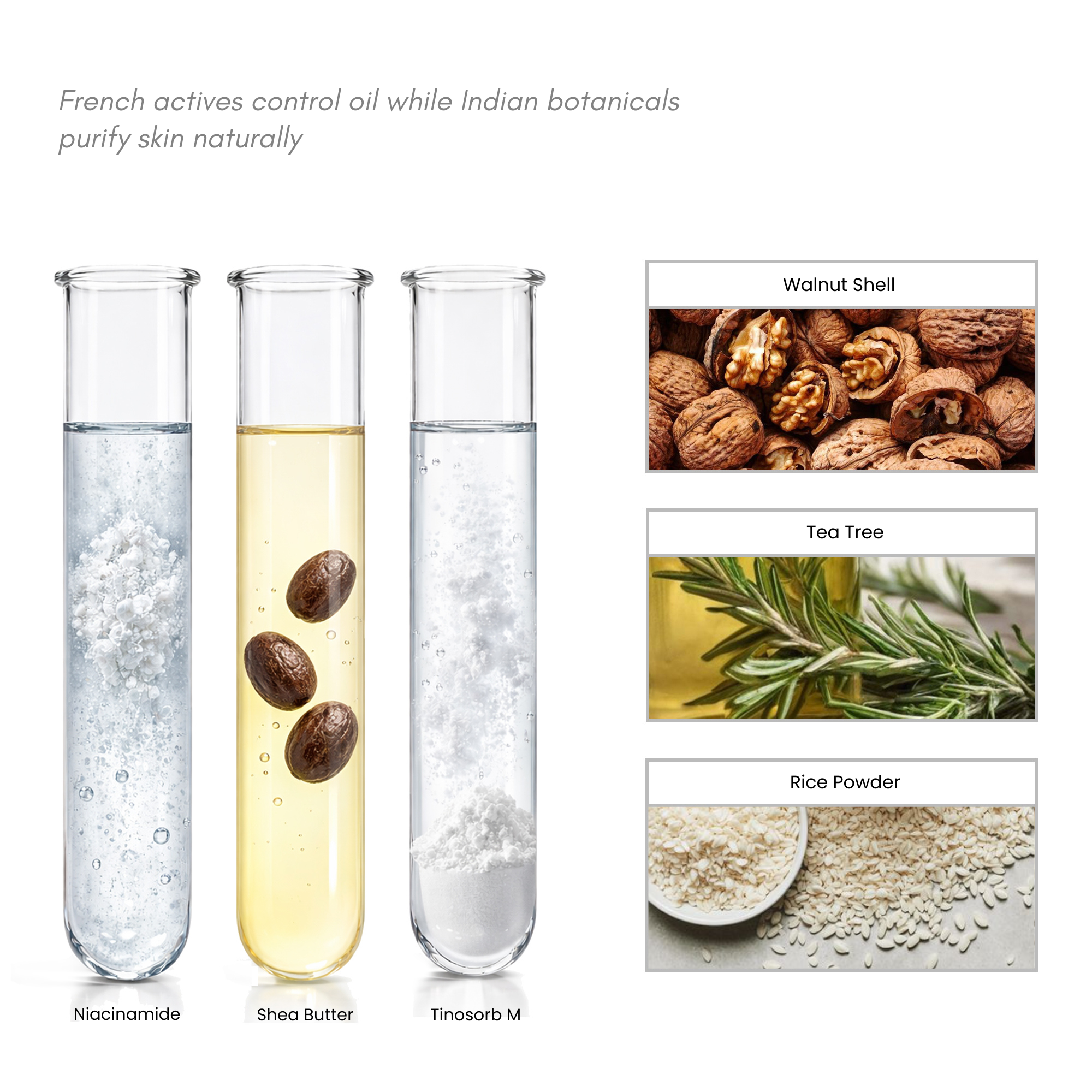 Massage gently onto damp skin focusing on oily areas. Rinse thoroughly. Use 2–3 times weekly.